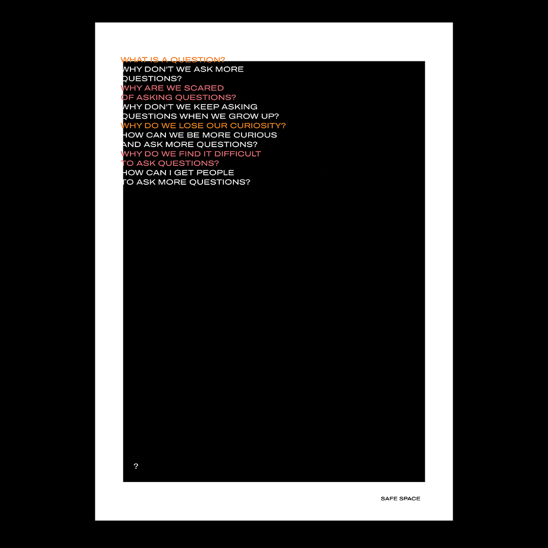 Resulting in a series of posters with collected data from the research. Raising awareness of the issue of not asking questions and encouraging the continuation of the conversation on that matter.